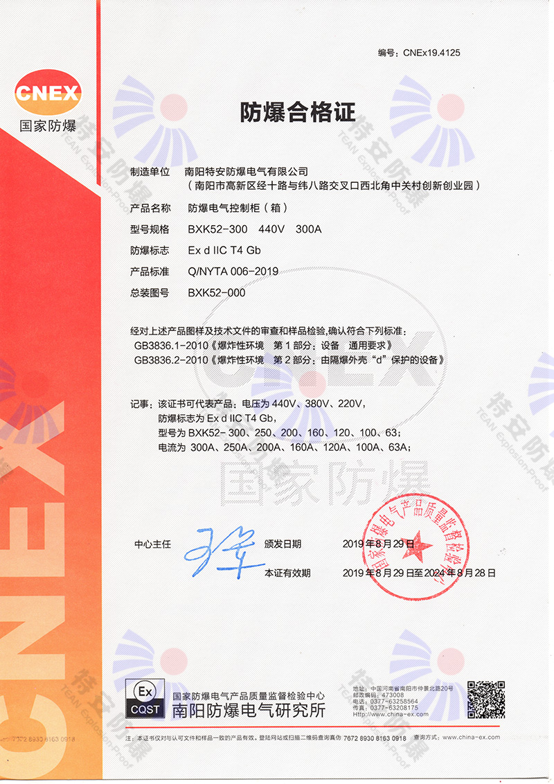 防爆電氣控制柜(箱)IIC 中國國家強制性認證證書(shū)(3C證書(shū))