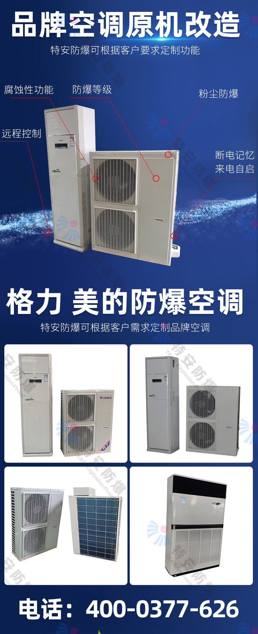 可根據用戶(hù)要求,對現場(chǎng)特殊空調設備進(jìn)行防爆處理。例如:大型冷水機組、冷凍機組、中央空調設備以及特殊安裝形式的空調設備進(jìn)行防爆處理,我們將設計制造方案,提交用戶(hù)查,必要時(shí),可根據用戶(hù)要求,申請防爆檢測中心在現場(chǎng)進(jìn)行產(chǎn)品防爆性能檢測;
