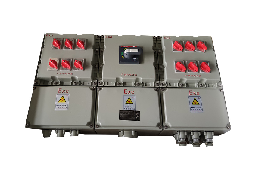 通過(guò)將多個(gè)防爆斷路器或動(dòng)力(照明)配電箱及數個(gè)了爆接線(xiàn)箱組合,可在電壓380V,電流300A的三相交流50Hz配電系統中實(shí)現動(dòng)力、照明配電設備的電能轉換分配及控制;