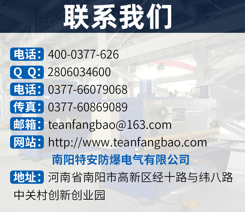 防爆型的性能符合GB3836.1-2000<爆炸性環(huán)境用防爆電氣設備通用要求>及JB/T8529-1997<隔爆型控制箱技術(shù)條件>的規定。